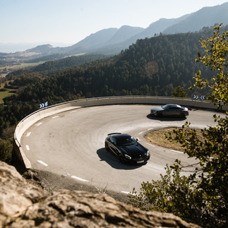 Tras la salida de La Roca Village pusimos rumbo a Osona, una comarca cargada de historia de motor y de tramos por los que muchos pilotos han corrido rallys míticos. Un primer sector de autovía y autopista nos llevaría a Tona, donde cogeríamos la carretera de Seva, Guillerías y de nuevo a Vic para conectar con Sant Hipòlit de Voltregà y culminar el mítico puerto de La Trona. La hilera de coches dejaba una estampa increíble con este maravilloso decorado de fondo.