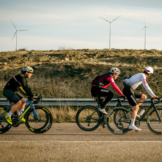 La tarde ofrecía el primer contacto con la bicicleta, y lo que en principio era una ruta de reconocimiento acabó convirtiéndose en uno de los momentos más memorables del evento. Rodar por carreteras completamente desiertas, entre paisajes abiertos del Maestrazgo y con el sol cayendo sobre los molinos eólicos, dejó una impresión difícil de igualar. El grupo completó una ruta exigente, pero el ambiente era de disfrute absoluto. A la vuelta, el contraste llegó en forma de descanso, spa y una cena en la que se presentó la gran etapa del día siguiente, con destino a Valdelinares.